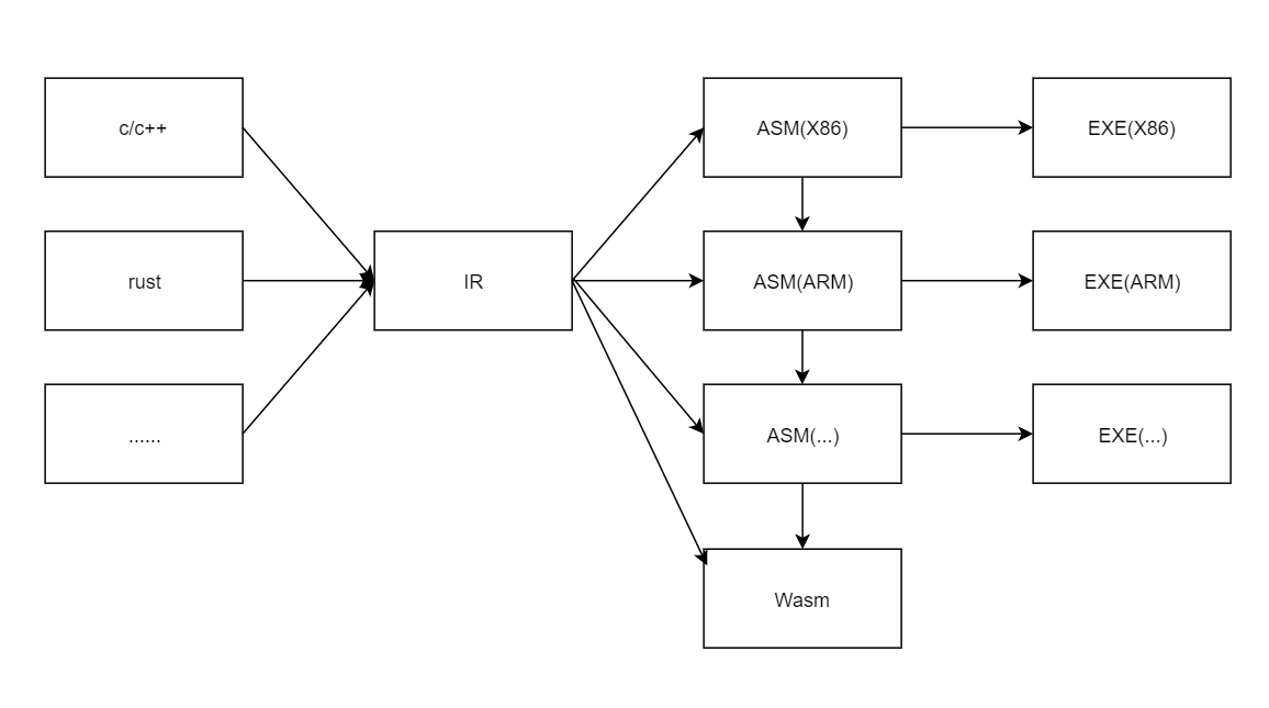 从高级语言编译器的角度看,WASM是目标代码,从浏览器角度看,WASM更像IR,由AOP/JIT编译器编译成平台相关的机器码.所以,WASM采用了虚拟机/字节码技术,并且定义了紧凑的二进制格式