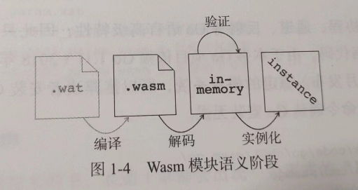 从二进制到最终执行分为3阶段: 解码、验证、执行.解码阶段将二进制模块解码为内存格式;验证阶段对模块进行静态分析,确保模块的结构满足规范要求,且函数的字节码没有不良行为;执行阶段分为实例化和函数调用两个阶段.