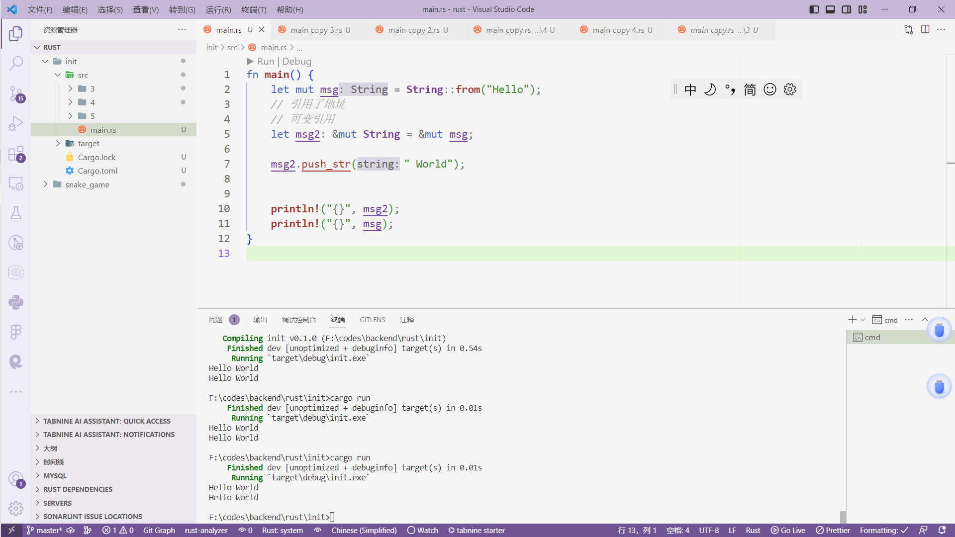let mut msg = "hello world";
