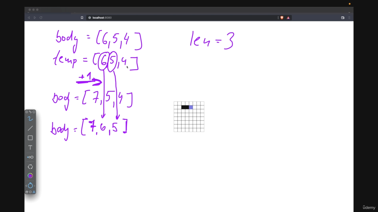// 撞到的那个去掉,就显示头部