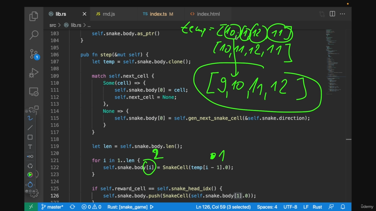 // .filter((cellIdx, i) => !(i > 0 && cellIdx === snakeCells[0]))