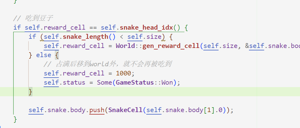 if self.reward_cell == Some(self.snake_head_idx()) {