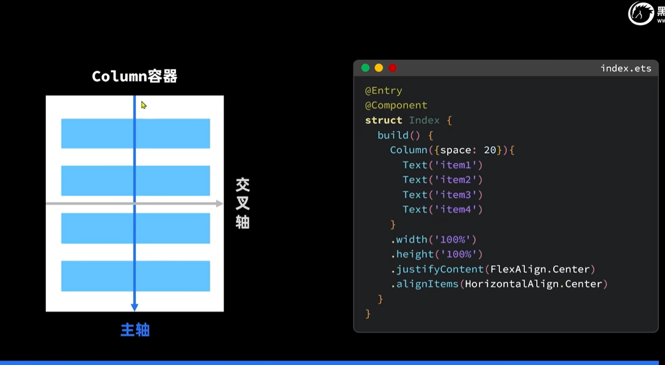 .justifyContent(FlexAlign.Center)